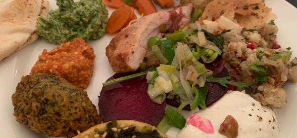 Kein Menü, sondern eine Vielzahl von kleinen Vorspeisen und Gerichten bereiteten wir in der Kochrunde gemeinsam zu. Bei fast so vielen Rezepten wie Mitkochern ging