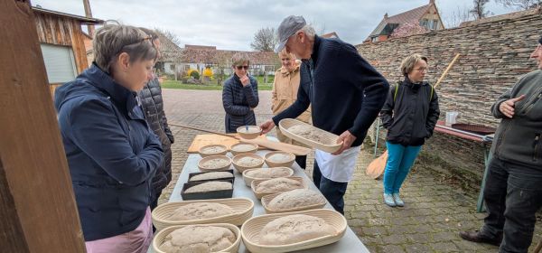 Brot und Kuchen mit Bäckermeister Wolfgang am 29. März 2025 Samstag, 11 Uhr. Es ist kalt. Dabei lockte Donnerstag und Freitag der Frühling. Aber egal,