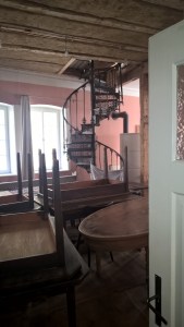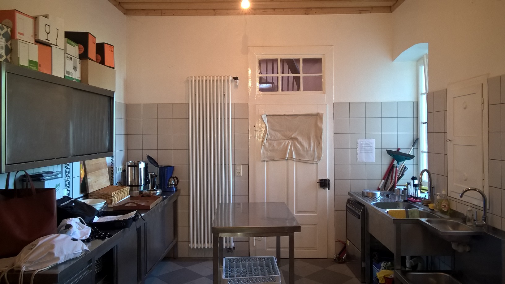 Größte Überraschung war der in 8 Zimmer aufgeteilte ehemalige Tanzsaal, der jetzt wieder in alter Größe, alle Wände wurden dazu entfernt, wieder erstrahlt. Und im Erdgeschoss kommen zu verschiedenen Tanz- und Yogakursen und nun auch die Slow Food – Kochrunden dazu.