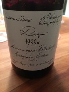 Zum syrischen Abendessen gab es wohl einer der aktuell besten Weißburgunder, ein 2013er BASALT von dem Weingut Odinstal aus Wachenheim.
