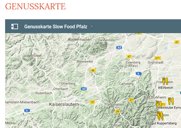 Die Karte enthält momentan alle Genussführer Restaurants. In Zukunft sollen auch unsere Förderer und andere Slow Food würdige Orte aufgelistet werden.