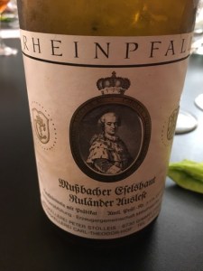 Essensmäßig sind wir ja eher bescheiden: Lammfleisch von der Schafzucht Popp aus Lachenspeyerdorf werden zum Abendessen gereicht. Der Preis (60 Euro) ist auch nicht gestiegen in den letzten 3 Jahren, die erste Raritätenprobe war am 07.11.2015.