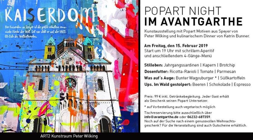 Die Kunstausstellung mit Popart Motiven aus Speyer von Peter Wilking und ein kulinarischem Dinner von Katrin Bunner, Slow Food Pfalz-Mitglied und die ehemalige Leiterin unserer tollen Kochkurse.