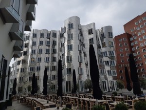 Foto oben: Medienhafen, die Gerry-Häuser und die MEERBAR.