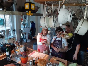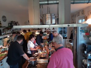 4. Mai: Start mit Frühstück im Cafe Muggel, Zeit zum Shoppen oder durch die Altstadt flanieren, Mittagessen im „Schuhmacher“, Besuch im Schloß Benrath und dann, als krönender Abschluss, der gemeinsame (und wunderbare) Kochabend mit den Mitgliedern aus Düsseldorf in der Kochwerkstatt des Slow-Food-Mitgliedes Thomas Deckert.