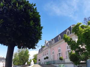 Foto oben: Nette Begegnung mit Pfälzer Produkten, denn das Weingut Peter Stolleis, Slow Food Pfalz – Mitglied seit 2014, hat als Etikett unseren/den Carl Theodor drauf und wird somit gerne im Düsseldorfer Schloß Benrath verkauft.