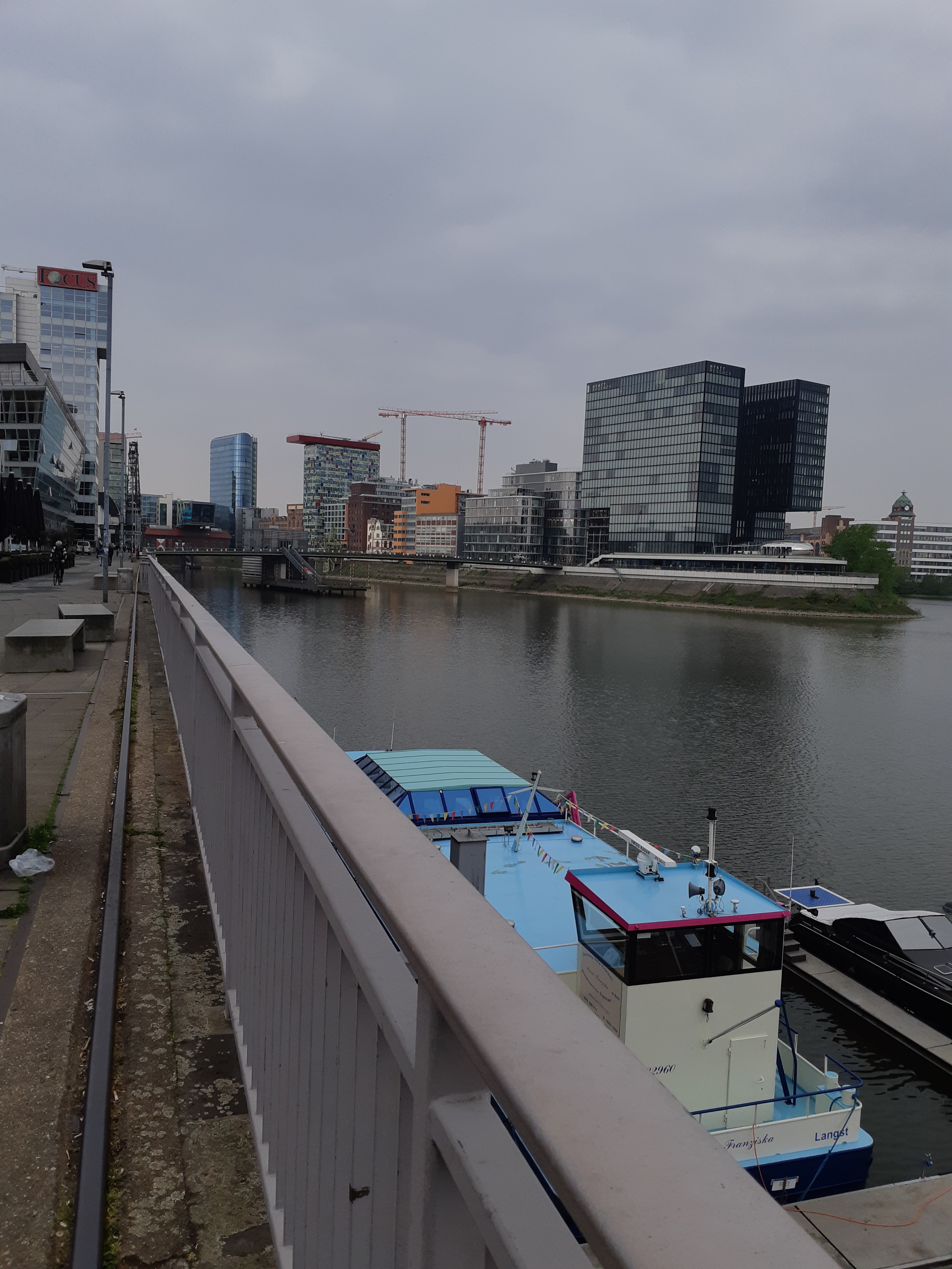 2. Mai: Spaziergang über Heinrich Heine Platz zum Kunstpalast, dort Besuch der Ausstellung „Zu schön um wahr zu sein“, alle dort ausgestellten Bilder waren von der Künstlerergruppe „Das Junge Rheinland“. Dann ein kurzer Spaziergang durch Hofgarten über Königsallee, Mittagessen im Café Heinemann (Slow Food Unterstützer), später etwas längerer, aber umso interessanter Spaziergang zum Medienhafen und zu dem erwarteter Regenschauer, darum sofort in die „MEERBAR“, in der selbst die Männer – Toiletten an einen Schiffsdampfer erinnern. Später Abendessen Brauhaus „Zum Schlüssel“.
