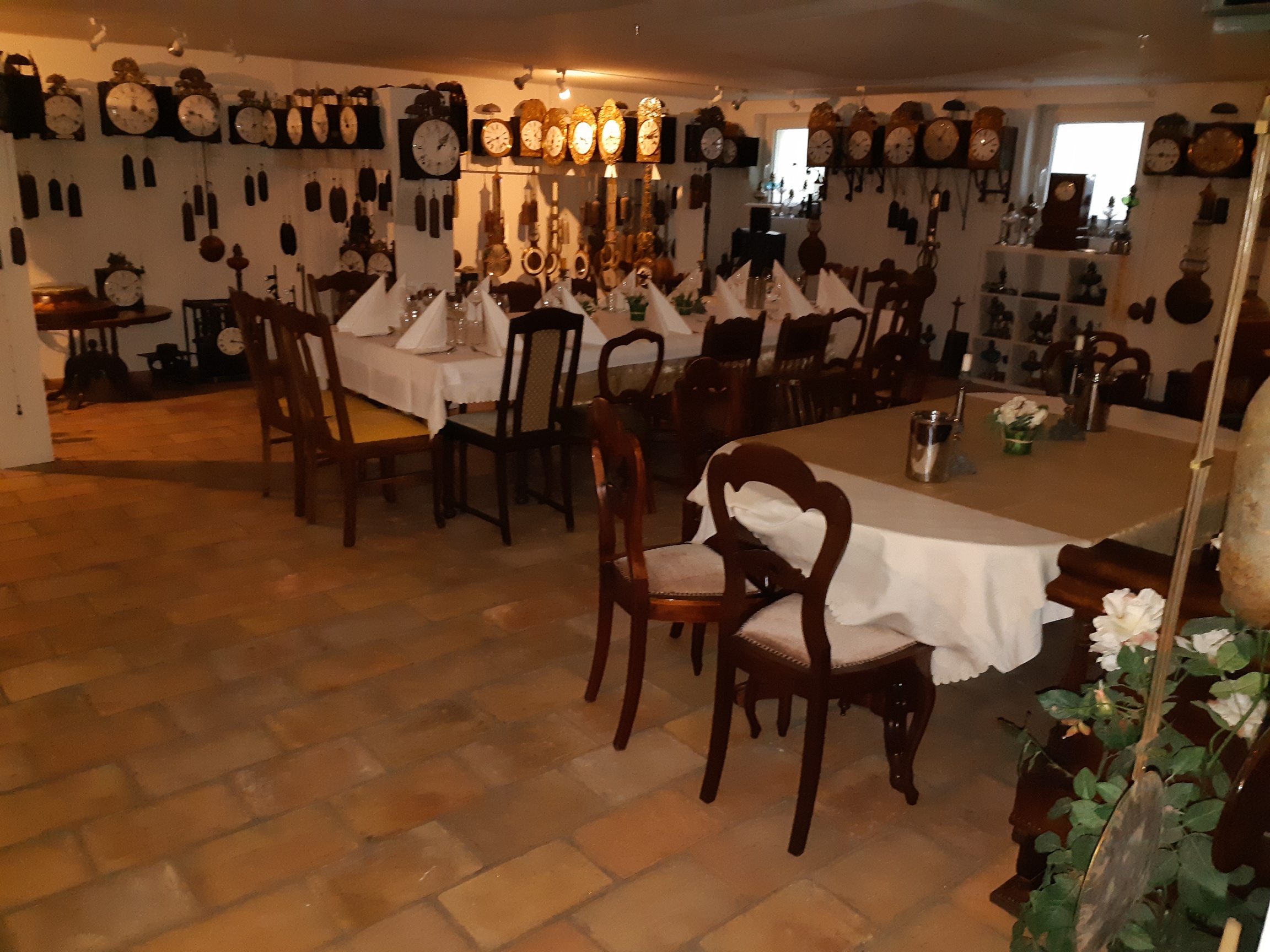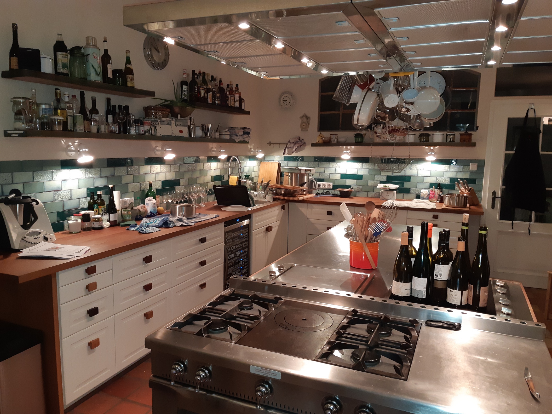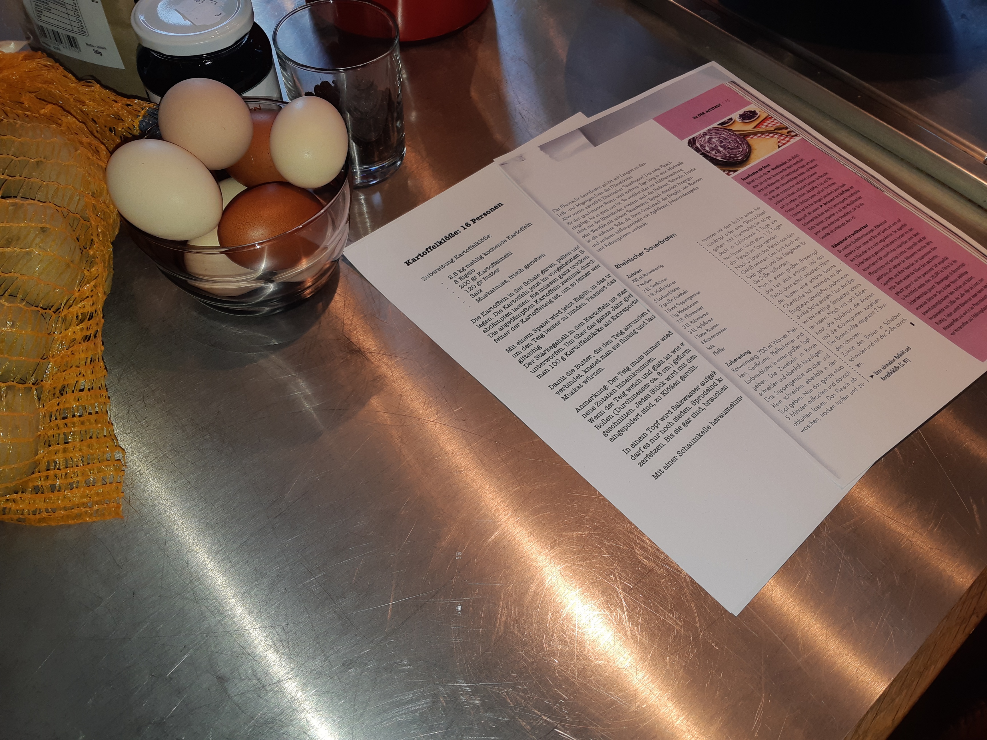 Foto unten: Großartiger Kochabend in Lörick im privaten Uhrenmuseum von Thomas Deckert. Es gab Düsseldorfer Senfsuppe, Rheinischen Sauerbraten mit Kohl, Himmel und Ääd mit Flönz.