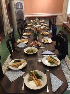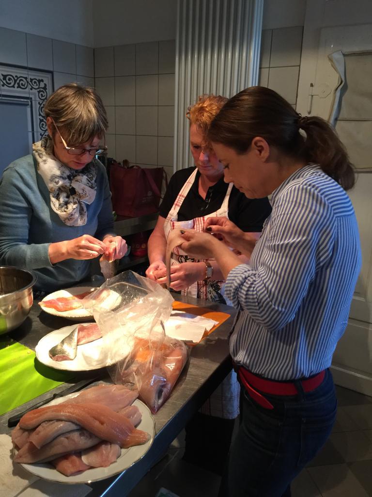 Auch sollte nach dem Aufruf im slow food Magazin nachhaltiger Fisch mit dabei sein. Da traf es sich gut, dass aus unserer Runde ein Mitglied eine Fischzucht in der Familie hat, und uns mit frischestem Saibling und Forellen versorgte.