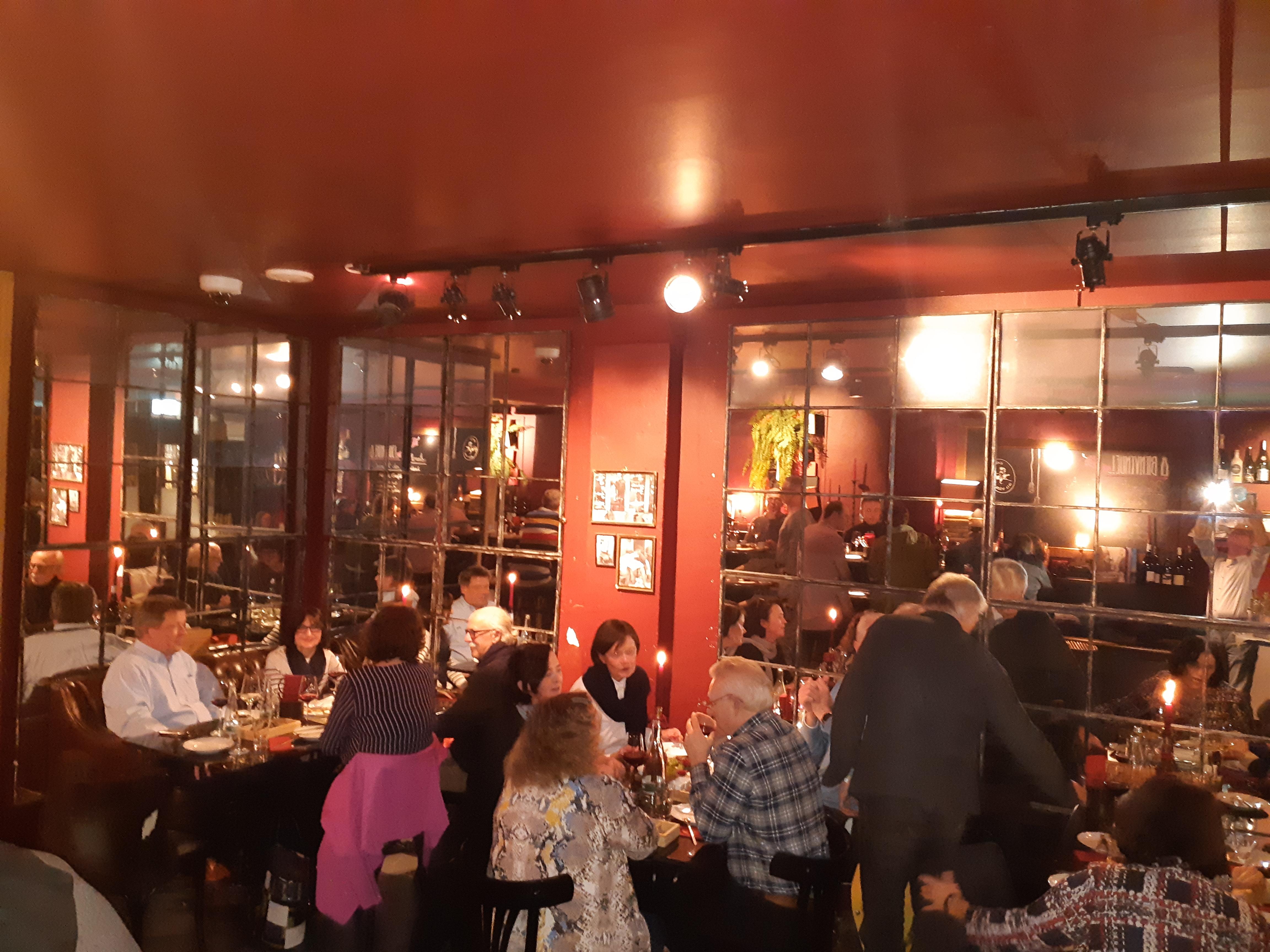 Es wurden dort pro Vierertisch kleine und feine Hors d‘Oeuvres und Käseteller in die Mitte gestellt, zusätzlich konnten man aus einer kleinen Karte typische Französische Gerichte bestellen und einige haben mit Austern, überbackener Zwiebelsuppe oder mit Bœuf Bourguignon zugegriffen.