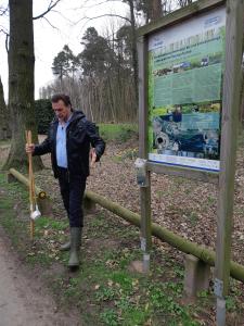 Martin Grund erläuterte nicht nur den Zusammenhang von Hochwasser am Rhein und überflutenden Wiesen und Wälder am Geinsheimer Gänsbuckel, sondern zeigte uns in einem weltweit genormten Schöpfbecher die jetzt schon stark vorhandenen Kleinkrebse (Stichwort „Vorstellung von Ergebnissen des Stechmückenlarvenmonitorings“, siehe http://nabu-nw.de/besuch-im-ortsbeirat-geinsheim-nabu-stellt-zusammen-mit-der-kabs-ergebnisse-des-stechmueckenlarven-monitorings-in-geinsheimer-ueberschwemmungsgebieten-vor/), die sich innerhalb von wenigen Wochen nach der Flutung zeigen. Über die verschiedenen Vogelrufe angesprochen, wurden wir aufmerksam gemacht auch auf Graugänse, Kanadagänse, Haubentaucher, Grau- und Silberreiher, Eisvögeln, Schwarz- und Buntspechten, Höckerschwänen und seltene Amphibien wie z. B. den blauen Moorfrosch (https://de.wikipedia.org/wiki/Moorfrosch).