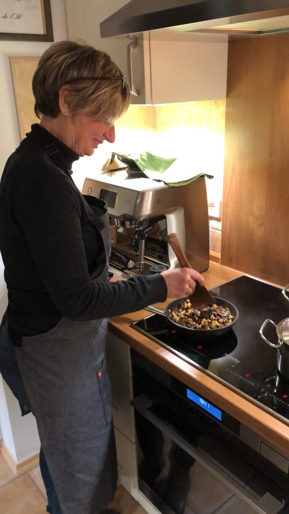 Dann wurde geschnippelt, gekocht und gegessen. Und man konnte über Zoom sehen was so in den einzelnen Haushalten vor sich ging. Die Teilnehmer konnten Fragen stellen und Ihre finalen Werke präsentieren.