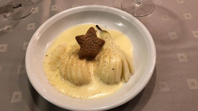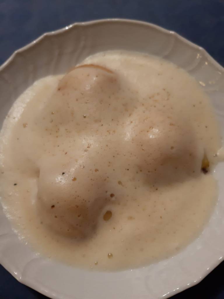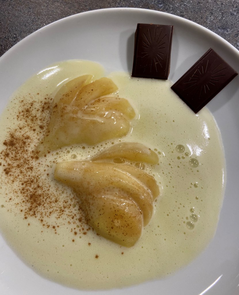 - Gedünstete Birnen mit Sabayon vom Birnenschaumwein aus der „Champagner“ Bratbirne