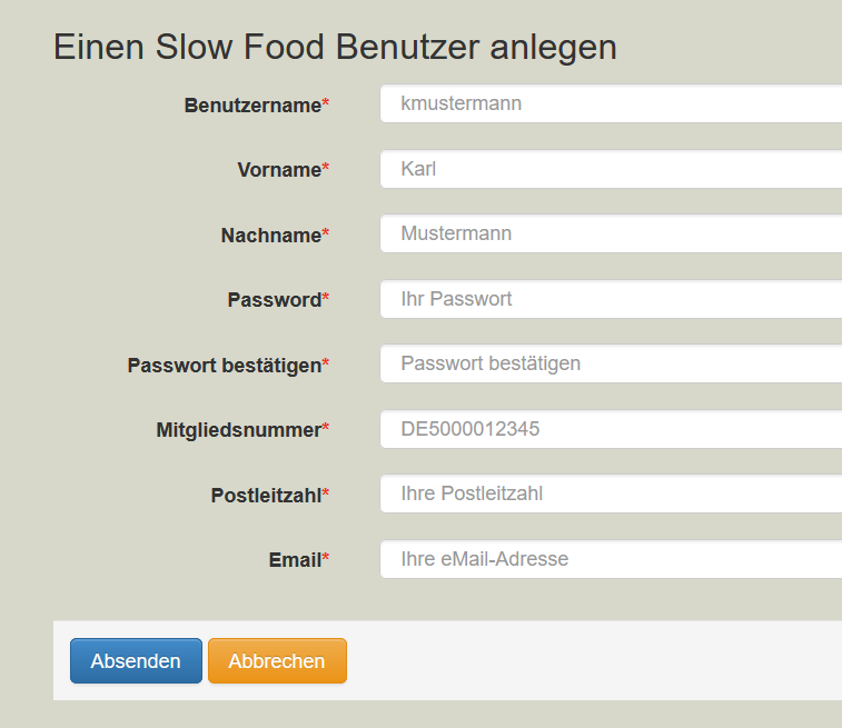 Schritt 1: Erstellen eines Login für slowfood.de