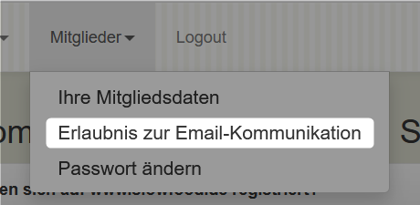 In dem Portal wählen Sie nun im Menü „Mitglieder“ die Funktion „Erlaubnis zur Email-Kommunikation“ an.