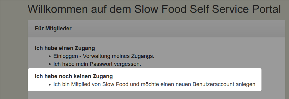 Gehen Sie auf sso.slowfood.de und klicken sie auf „Ich bin Mitglied von Slow Food…..“ wie in diesem Bild gezeigt.