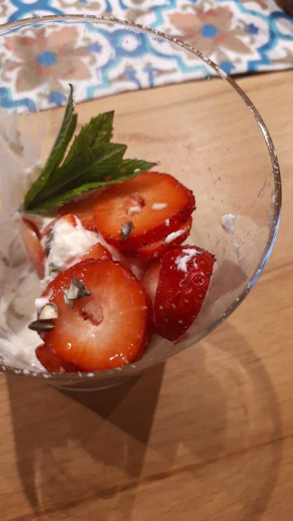 3. Gang: Zitronen-Joghurtcreme mit Erdbeeren