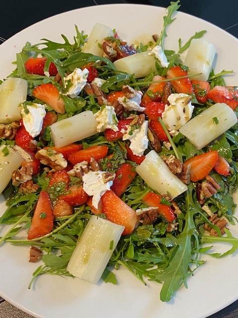 - Gang: Spargel-Erdbeer-Salat mit gratiniertem Ziegenkäse