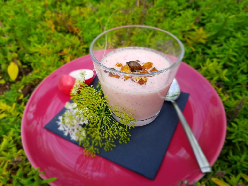 Das Wetter verhält sich aktuell zwar nicht allzu sommerlich, aber die heißen Tage kommen noch, da können wir ziemlich sicher sein. Und für den hochsommerlichen Genuss habe ich eine kalte Joghurtsuppe auf der Basis von knackig-frischen Radieschen kreiert. Wenn ihr einen guten Standmixer habt, ist sie im Handumdrehen zubereitet. Aber es funktioniert natürlich auch mit einem Mixstab (meine Mama hat es bereits erfolgreich exerziert), dafür müsste man die Radieschen nur vor dem Zerschlagen etwas klein schneiden.