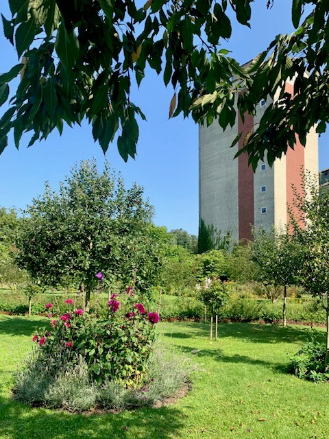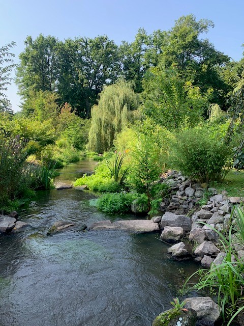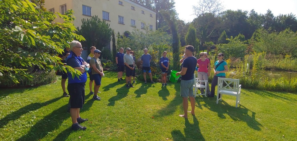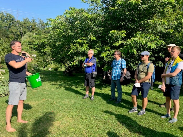 Die erste Station war die Westheimer Mühle, wo wir von Bernd Louis begrüßt wurden. Er gab uns einen Überblick über das Hofgut und die Mühle, deren fantastischer Garten der Sinne unsere Erwartungen bei Weitem übertroffen hat. Timo Heiny zeigte uns die Pfauen und deren Jungtiere und begleitete uns bei einer einstündigen Tour durch den Garten. Was die beiden Männer aus dem sandigen Gelände einer ehemaligen Mühle innerhalb von sieben Jahren erschaffen haben, war eine faszinierende grüne Oase der Ruhe.