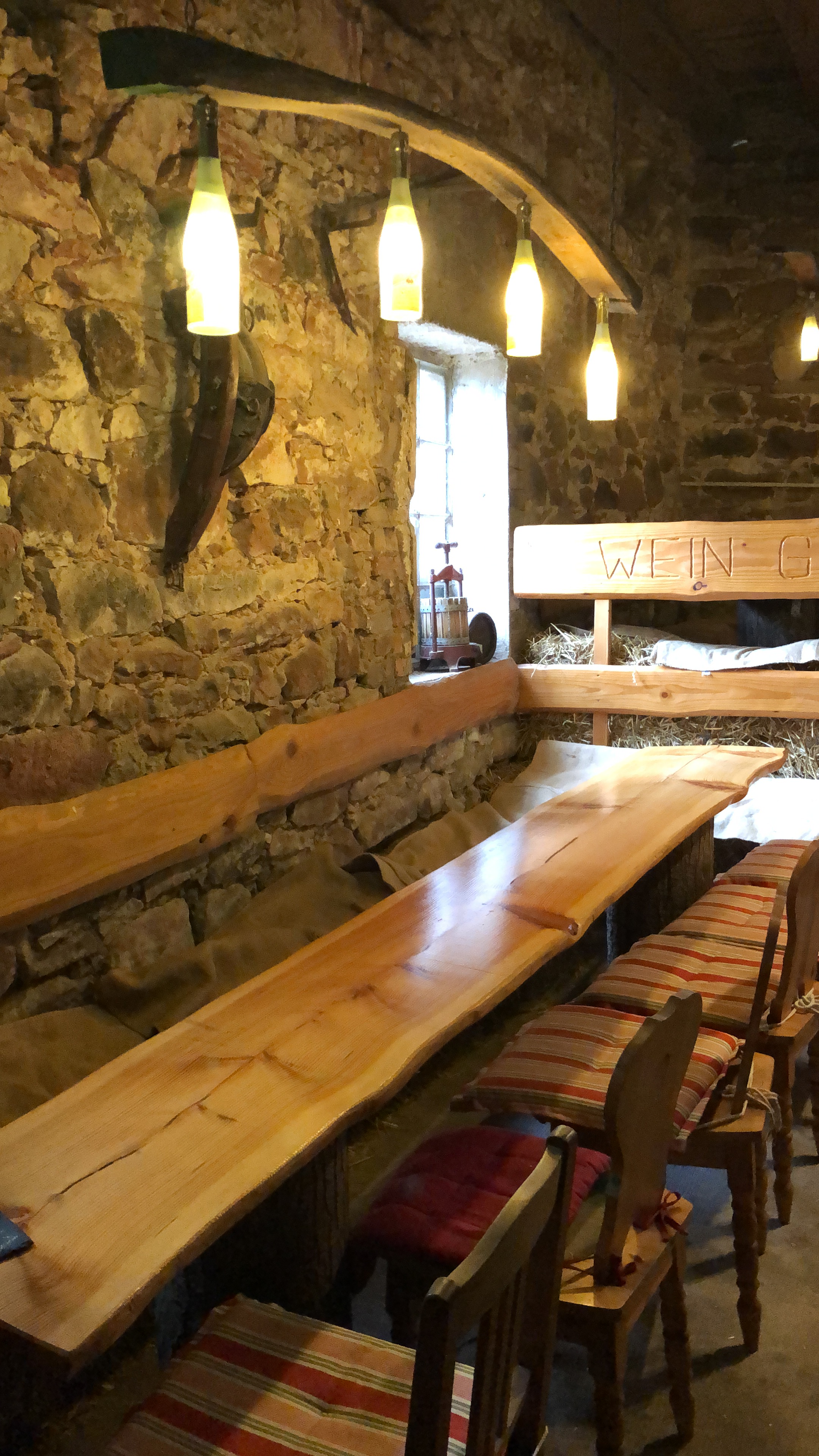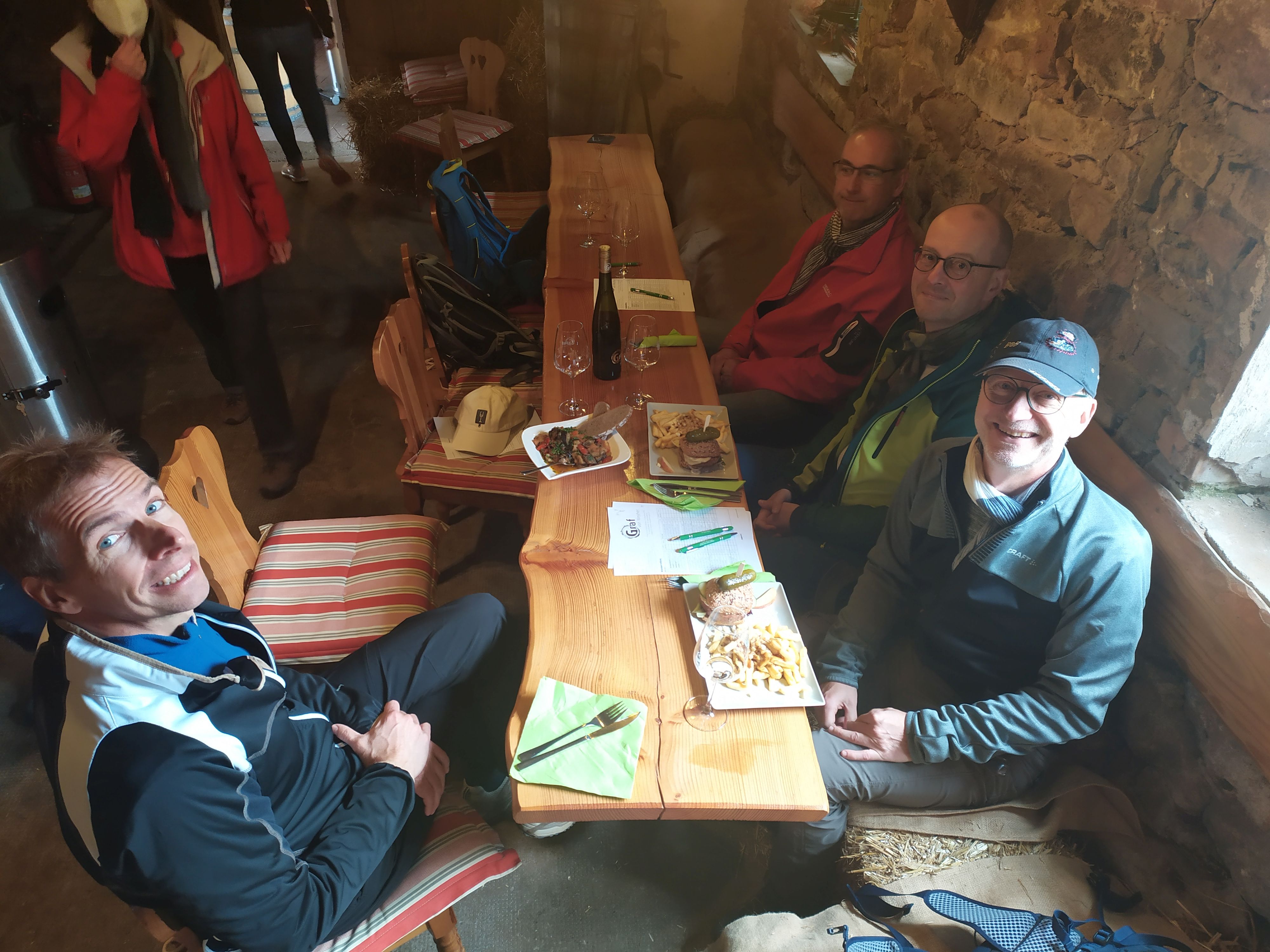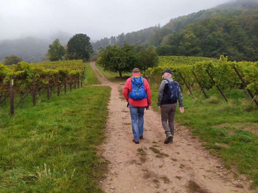 Schon ein wenig angeheitert, gut gelaunt und bei gutem Wanderwetter (es regnete zumindest nicht), führte uns der Weg schließlich nach Hainfeld zum Bioland-Weingut Kastanienberg.