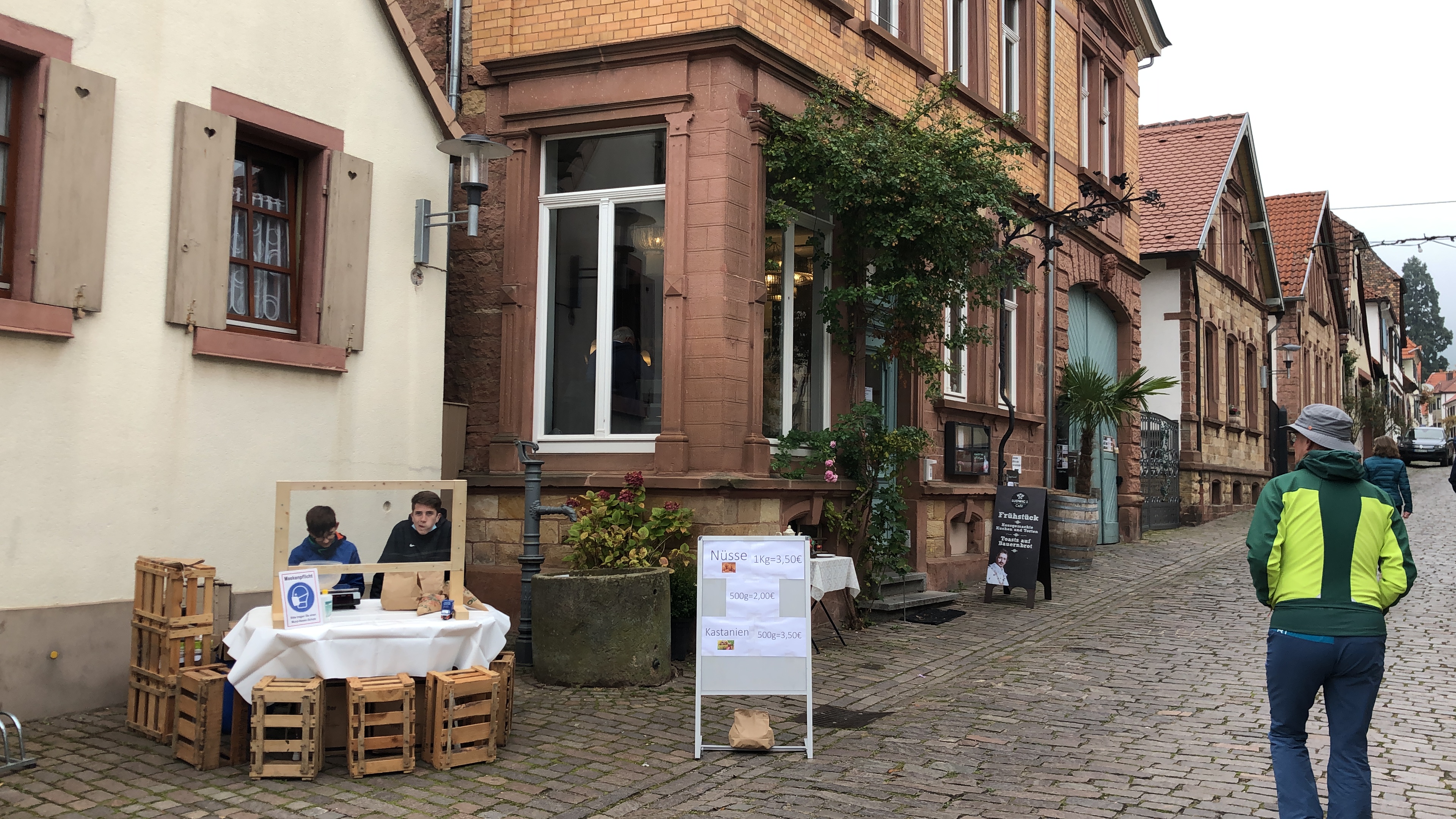 Entlang der Theresienstraße verließen wir dann den pittoresken Ort, durch Weinberge wandernd, bis zur Villa Ludwigshöhe. Momentan wird die komplette Fassade restauriert.