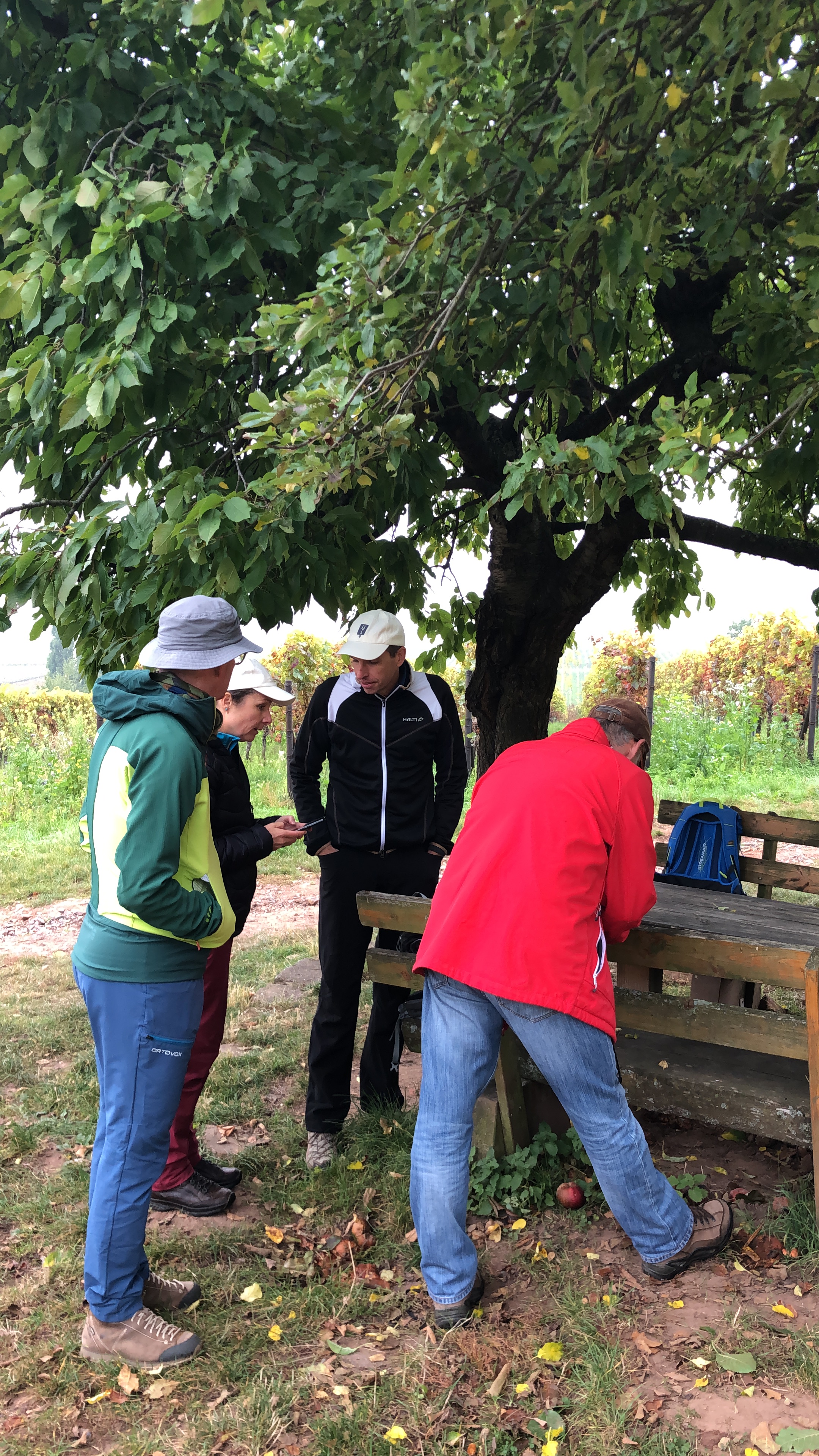 Wir hatten eine fünfstündige Weinwanderung gebucht, die mit Weinproben bei drei verschiedenen Winzern und einem Mittagessen verbunden war. Etelka und Bernd verrieten uns aber erst bei unserem Zusammentreffen, wo der Weg lang führen und wo für Speis und Trank gesorgt werden sollte.