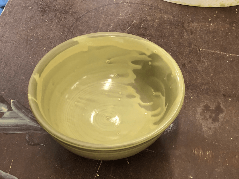Daraufhin haben auch wir Hand angelegt. Jeder hat eine mit Punzen versehene Negativform einer kleinen Schale, mit Ton ausgekleidet, danach gestülpt und, wie bereits beschrieben, den Fuß angebracht. Nach dem Brennen werden wir sie dann als Andenken erhalten.