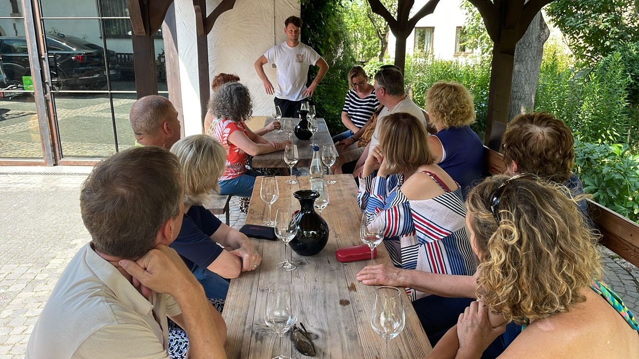 Gemeinsam mit den Convivien Pfälzerwald und Rhein-Neckar trafen wir uns am Samstag, den 24.6. zuerst zu einer Kellerführung mit anschließender kleiner Weinprobe in Freinsheim im Weingut Reibold.