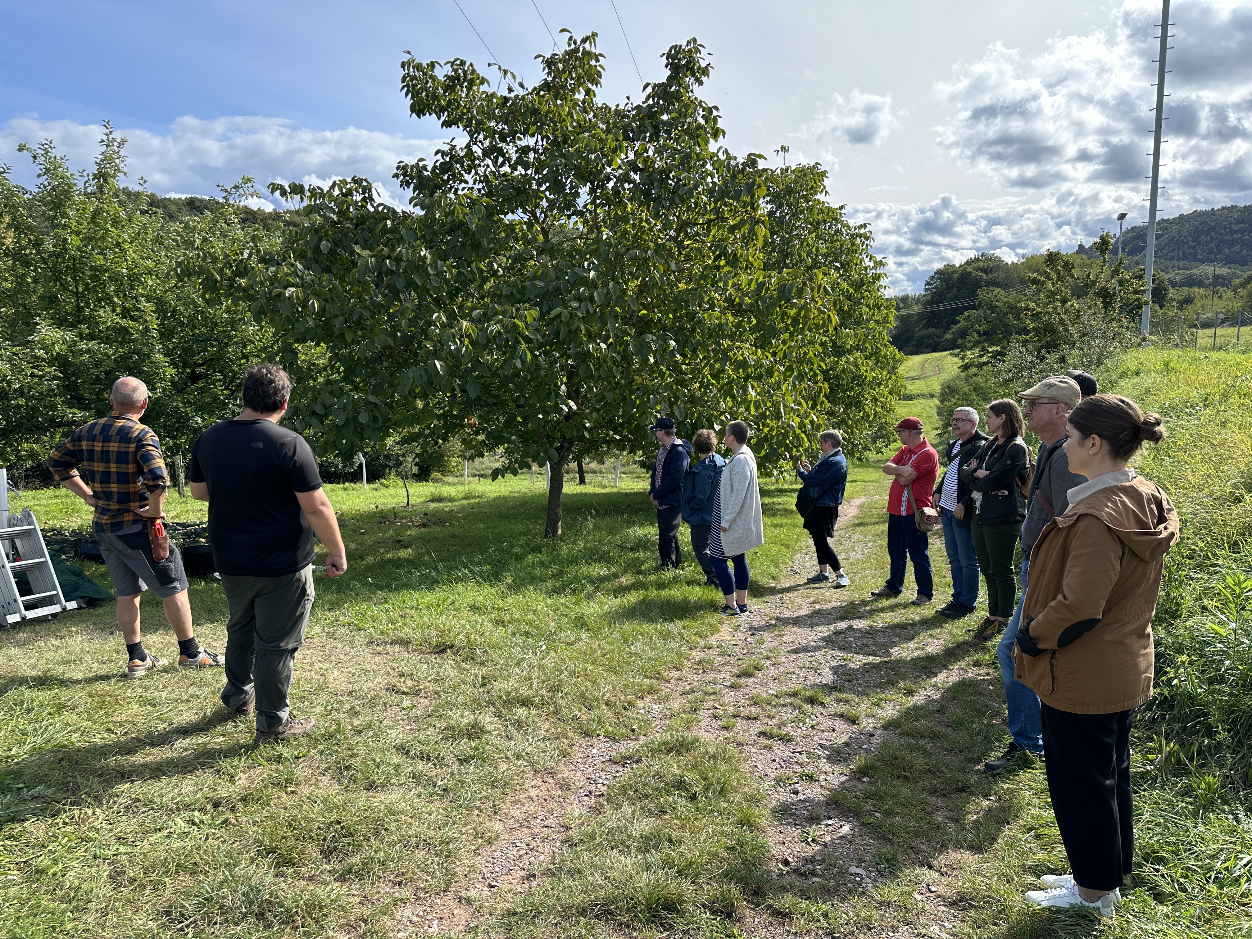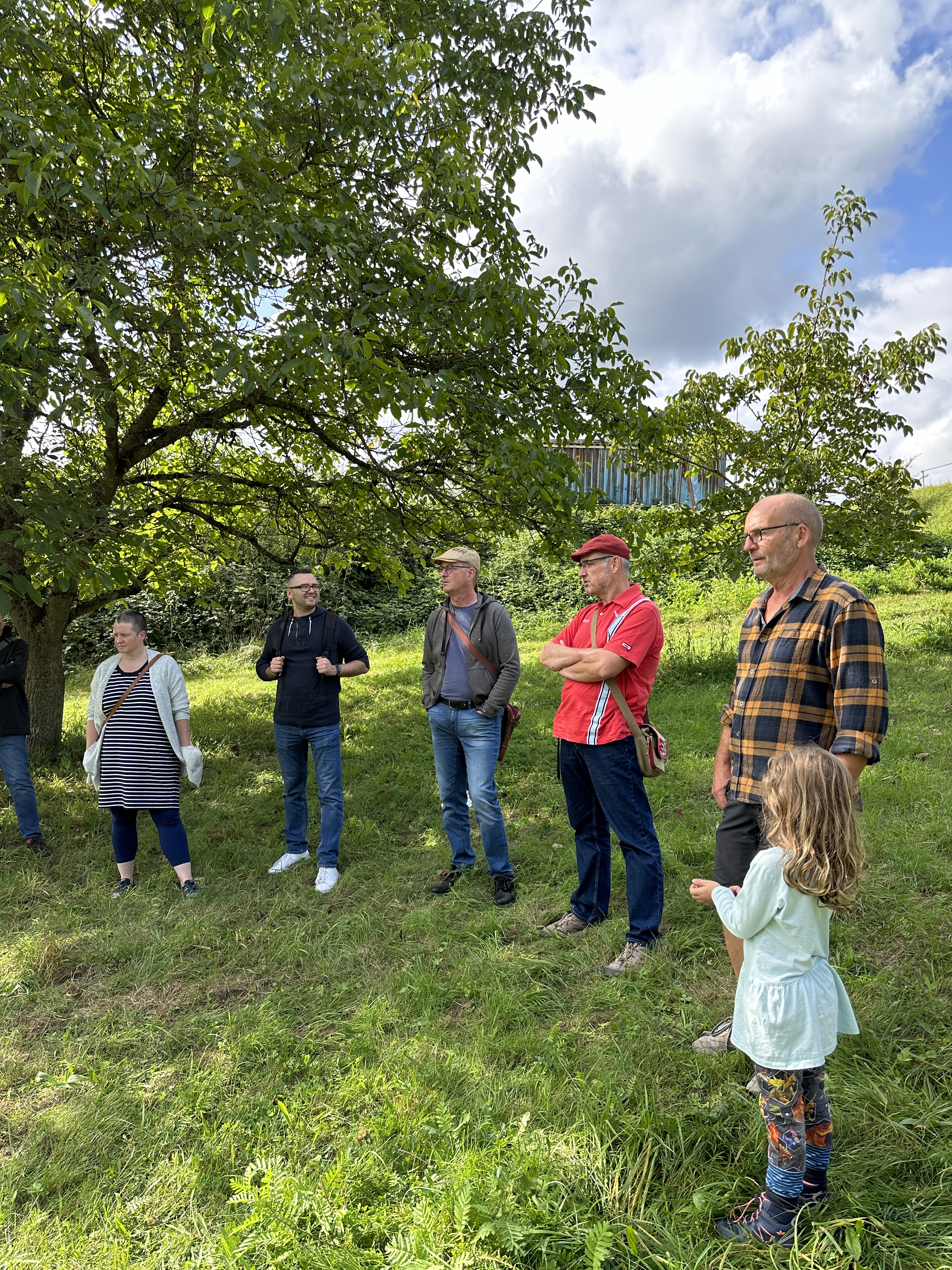 Deren Bepflanzung bestand überwiegend aus Apfelbäumen, vereinzelten Birnenbäumen und einem Zwetschgenbaum. Während der Begehung erfuhren wir viel Wissenswertes über die historische Bedeutung einer solchen Wiese und viele interessante Details zur Wiesen- und Baumpflege.