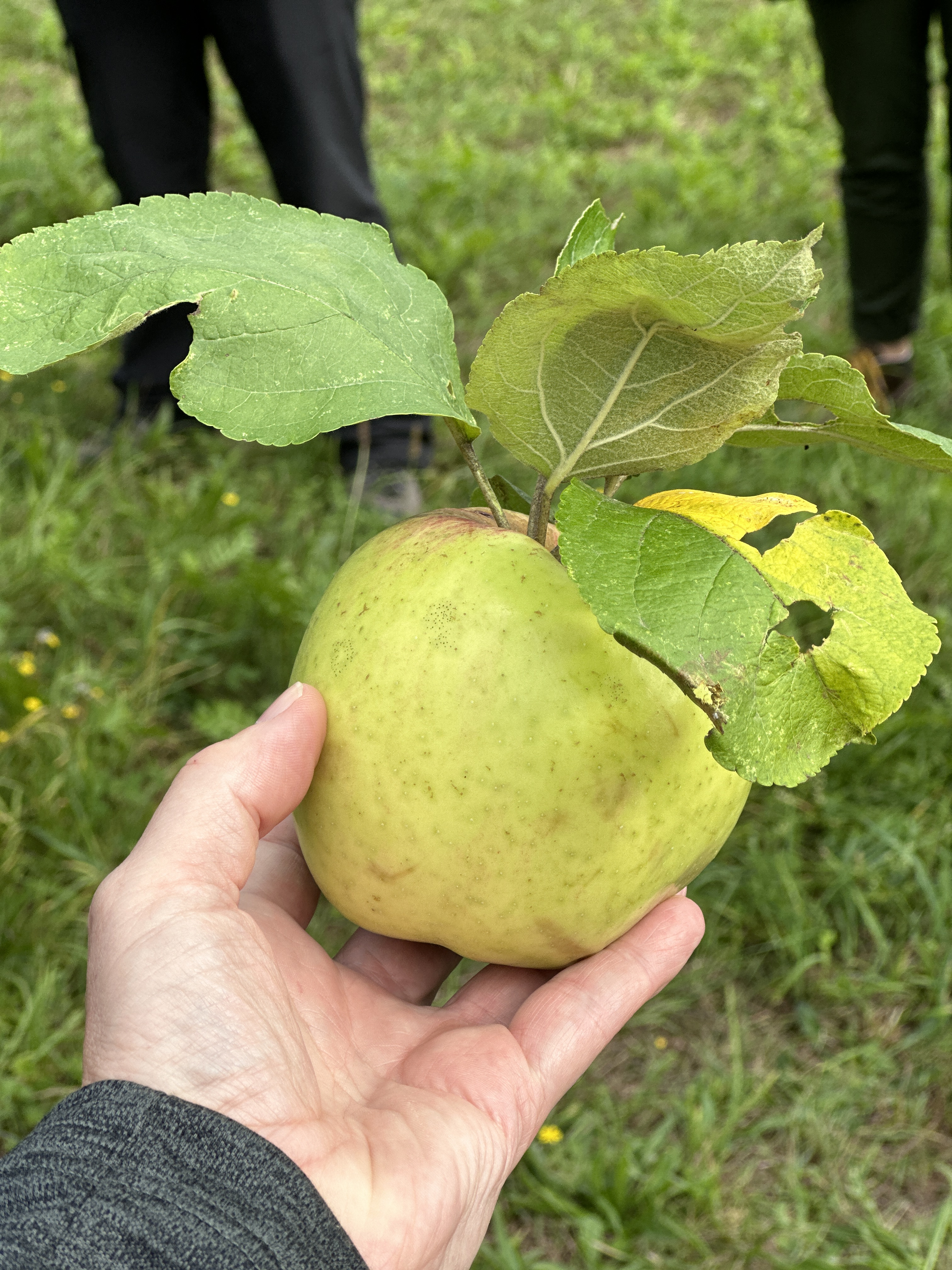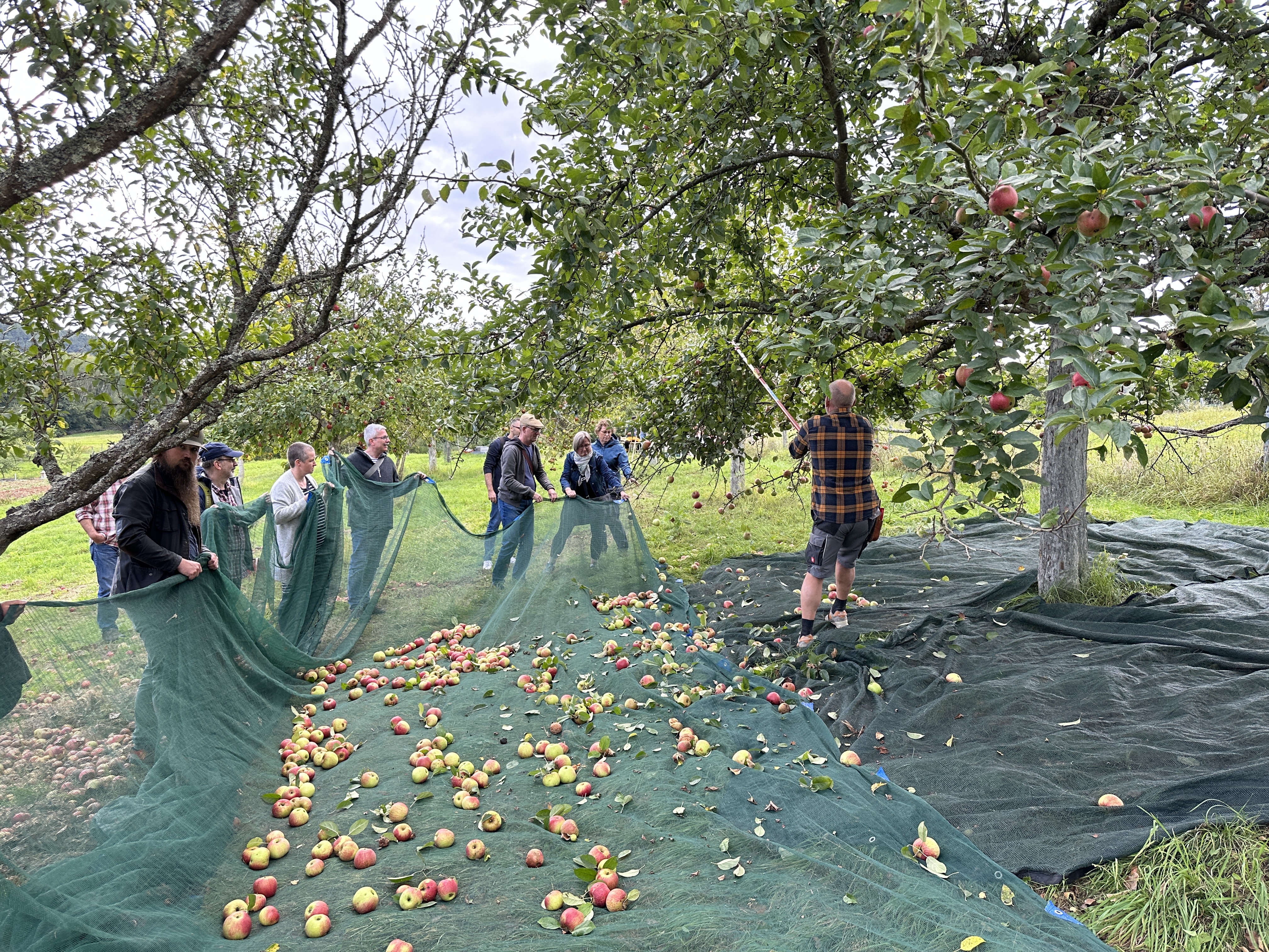An dem einzigen, noch nicht abgeernteten Baum durften wir mit anpacken und Jannis, Joachim und anderen Helfer bei der Ernte der Äpfel unterstützen. Dabei fanden äußerst interessante, speziell dafür konzipierte Hilfsmittel ihren Einsatz. Hat Spaß gemacht!