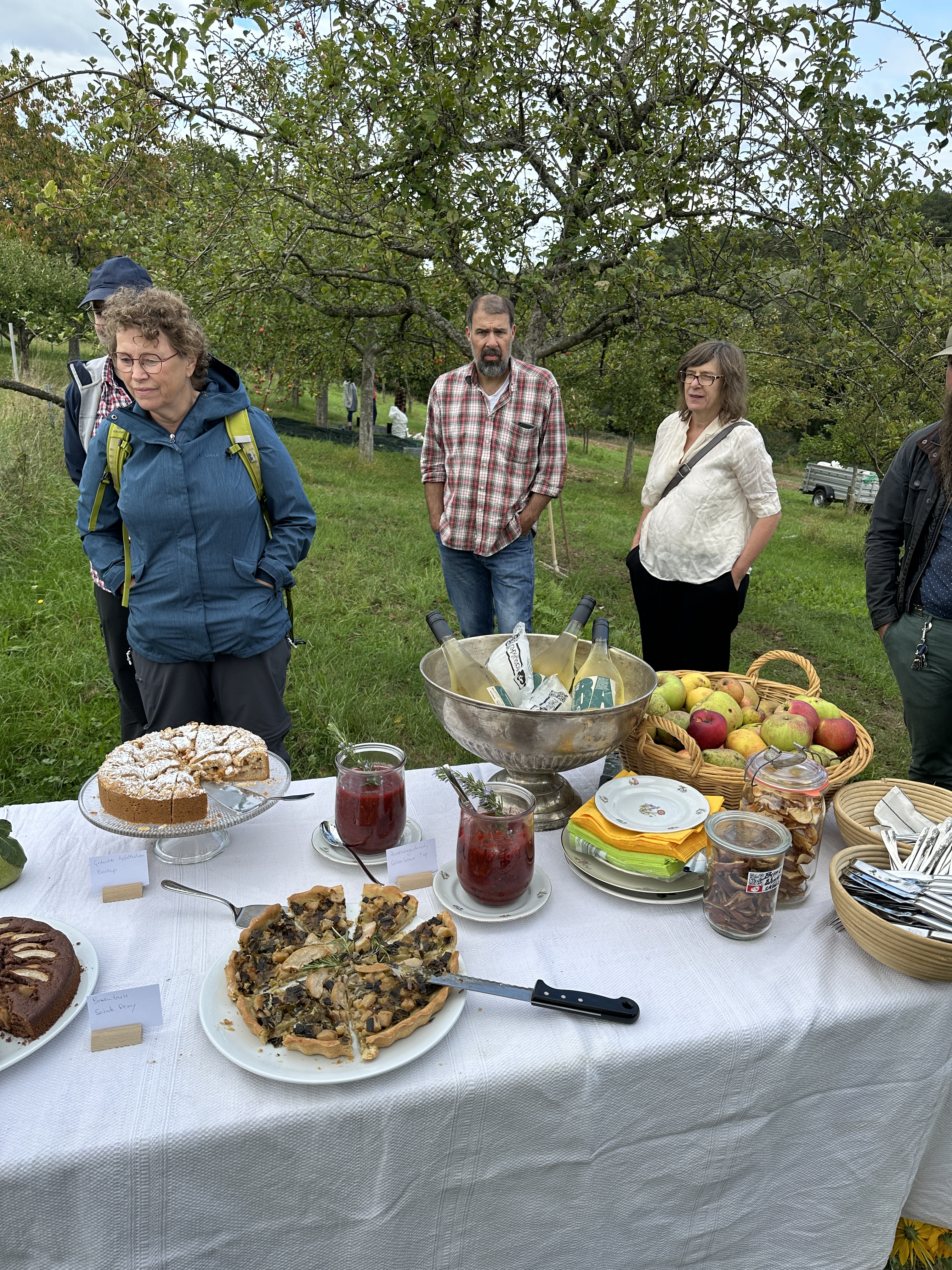 Mit dem einen oder anderen Apfel in der Tasche nahmen wir anschließend Platz an den liebevoll gedeckten Tischen, um dort mit der Verkostung zu beginnen.