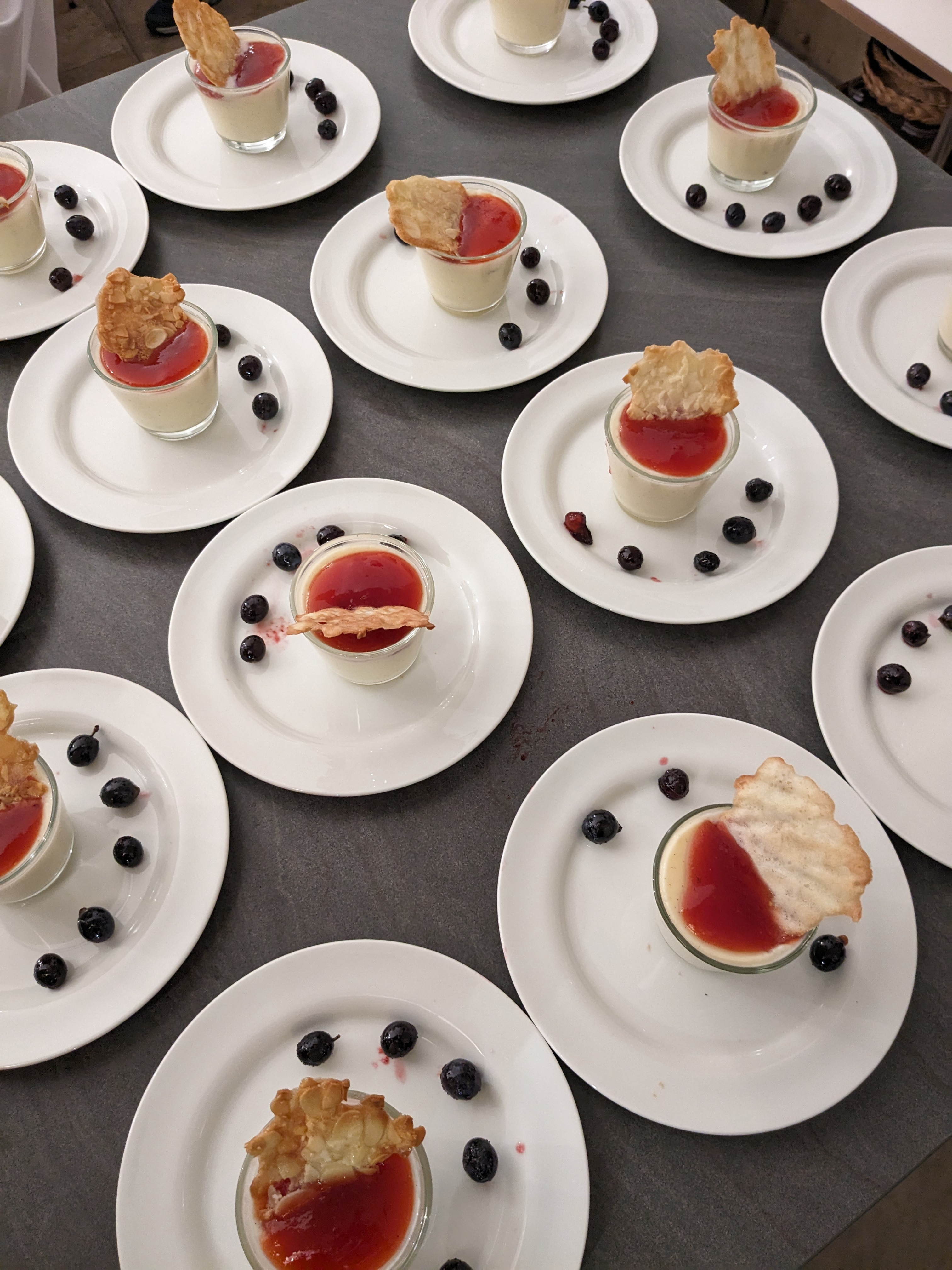 Vanilleflammeri mit „wildem“ Aperol und Schlehen, zu dem es eine ausdrucksstarke 2022 Huxelrebe Spätlese gibt.