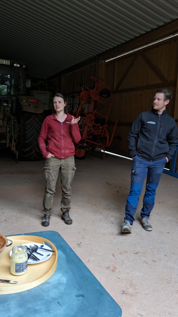 Anfang Juni zeigten uns Melanie und Markus Seeber stolz ihren Biohof am Hollerberg in Bolanden. Es war sehr interessant und vor allem schön zu sehen, wie engagiert und ideenreich die beiden ökologischen Landbau nach den Bioland-Richtlinien betreiben.