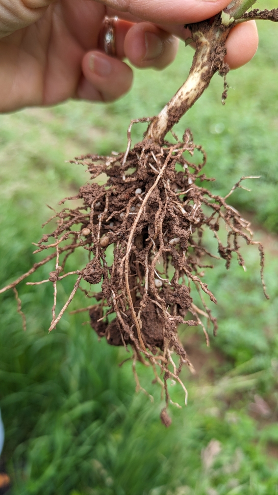 Süßlupine – die Wurzelknöllchen, genauer die Knöllchenbakterien an den Wurzeln der Leguminosen, sammeln und binden Stickstoff.