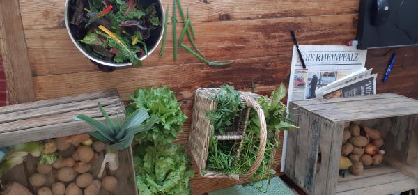 Foto oben: Kartoffel, Salat, Rüben, Porree, Mangold, Karotten und verschiedene Kräuter, Zwiebeln und die rote Beete fehlen, die hab ich dem Nachbarn geschenkt 🙂 Chapeau!