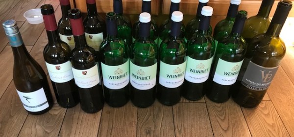 Einige Teilnehmer haben jetzt schon ihre Weine vorbeigebracht oder gemeldet, d. h. dass zu den 6 von Thomas Metzger bereitgestellten Weine (Foto vom Sixpack oben)