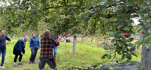 Wir trafen uns mit Jannis und dem Baumwart Joachim von der Manufaktur Purzelbaum auf einer ihrer bewirtschafteten Streuobstwiesen bei Völkersweiler im Pfälzer Wald. Deren Bepflanzung